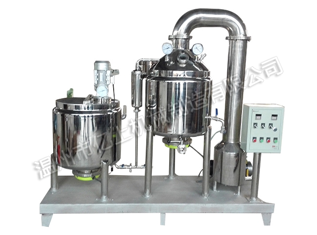 9、根據(jù)經(jīng)驗,大約40分鐘左右,濃縮完畢,停止加熱,關閉真空泵抽氣閥,打開濃縮罐排空閥,真空度降到常態(tài)后,開啟出料閥放料,同時應將回收罐中的水放凈,以備下次工作。